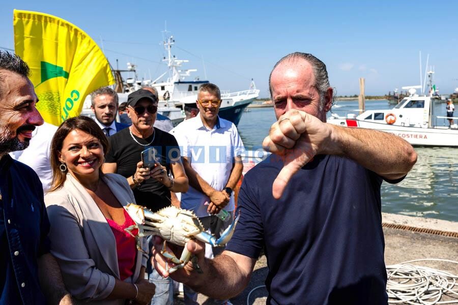 PORTO TOLLE (Rovigo) – Un dramma per il comparto della pesca del Delta del Po. Il Granchio blu sta divorando tutto, operatori del settore della coltivazione dei molluschi in ginocchio, Luca Zaia, governatore del Veneto, mercoledì 23 agosto ha incontrato i pescatori al Porto di Pila nel comune di Porto Tolle (Rovigo). Presenti tra gli altri, il Senatore Bartolomeo Amidei, l’assessore regionale alla pesca, il polesano Cristiano Corazzari, la consigliera regionale Laura Cestari, il presidente della Provincia di Rovigo, Enrico Ferrarese, il sindaco di Porto Tolle, Roberto Pizzoli, e diversi primi cittadini del territorio bassopolesano. LEGGI L’ARTICOLO SULL’ULTIMA SPAGHETTATA DI COZZE E VONGOLE