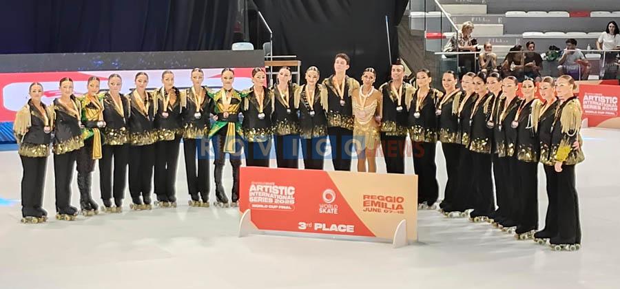 La giornata di gare di sabato 14 giugno si era chiusa con la spettacolare competizione dei Grandi Gruppi, nella quale ha gareggiato la nuova formazione Dejavù della società Roll Club Padova. Dopo il quarto posto ai Campionati Italiani ed il settimo posto al recentissimo Campionato Europeo, è arrivato il terzo gradino del podio; una splendida medaglia di bronzo internazionale, alle spalle dei quotati gruppi spagnoli, che in questa particolare specialità la fanno assolutamente da padroni.