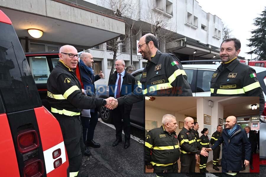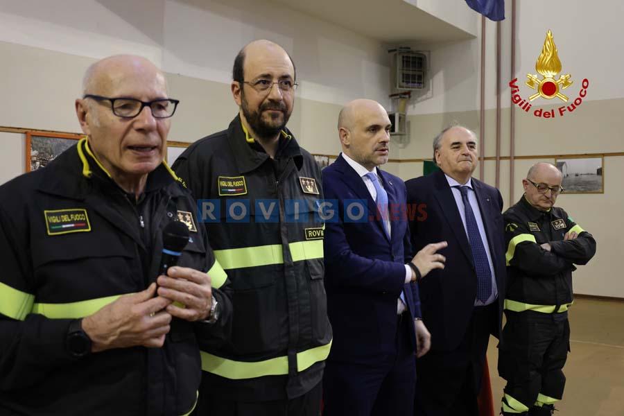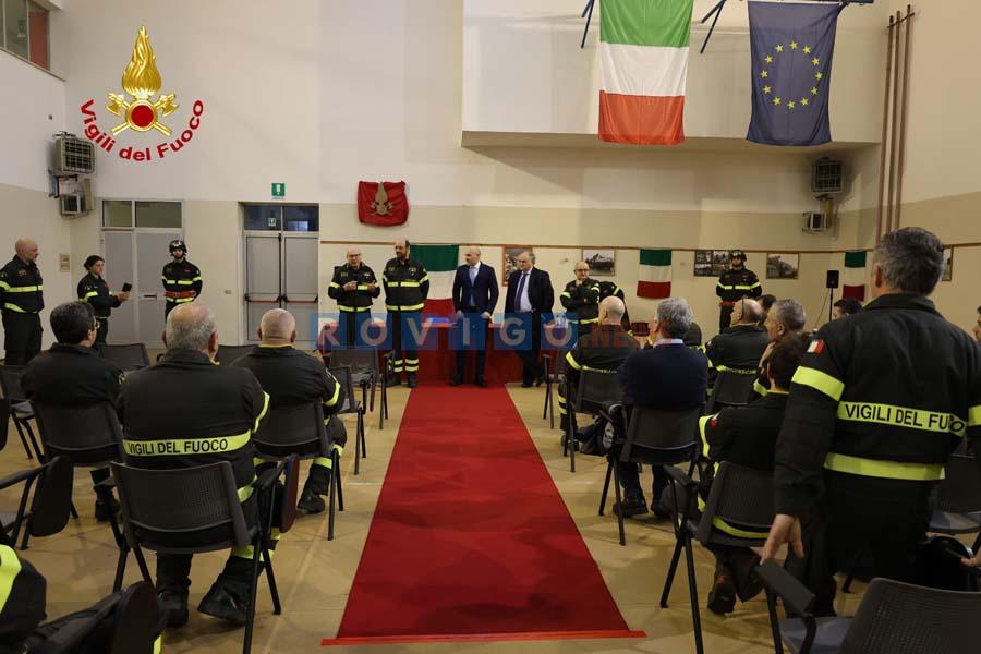 Ad accoglierlo in via dell’Ippodromo le massime autorità militari e civili della Provincia, con in testa ovviamente il comandante provinciale dei Vigili del fuoco Claudio Fortucci, il direttore interregionale Loris Munaro, il Prefetto di Rovigo, Clemente Di Nuzzo, il Questore Giovanni Battista Scali, il comandante provinciale dei Carabinieri colonnello Edoardo Campora, il comandante del Nucleo di Polizia Economico-Finanziaria della Guardia di Finanza di Rovigo, Colonnello Ferdinando Mazzacuva, il sub-commissario del Comune di Rovigo Fabrizio Cesarini, il senatore Bartolomeo Amidei, l’assessore regionale Cristiano Corazzari, la consigliera regionale Laura Cestari, il presidente della Provincia Enrico Ferrarese e il sindaco di Porto Viro Valeria Mantovan. Presente anche una delegazione dell’Associazione Nazionale Vigili del fuoco in congedo.