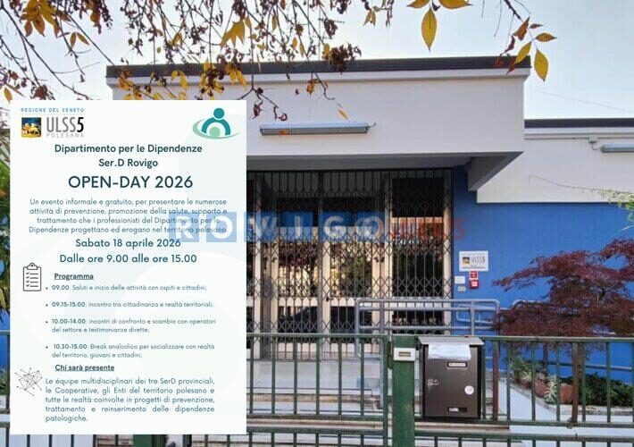 ROVIGO – Promuovere la cultura della prevenzione, superare i pregiudizi e rafforzare il rapporto tra servizi sanitari e cittadini. Con questi obiettivi si terrà sabato 18 aprile, dalle 9.00 alle 15.00, l’Open Day 2026 organizzato dal Dipartimento per le Dipendenze dell’Aulss 5 Polesana, presso la sede del Ser.D di Rovigo (via Gramsci, 27).