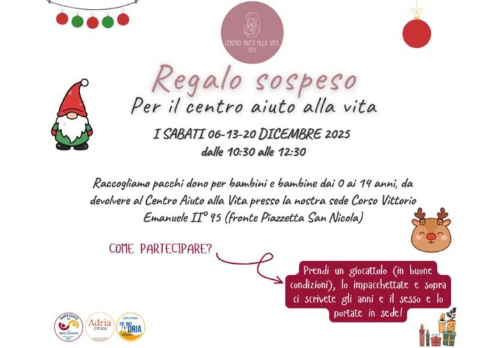 Nei sabati 6, 13 e 20 (mese di dicembre), presso la sede Impegno per il Bene Comune sarà possibile consegnare pacchi contenenti giocattoli nuovi o usati...